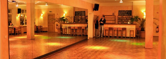 Mit viel Liebe zum Detail wurde unser großer Saal renoviert und eingerichtet. Hier können Sie wunderbar einen Wiener Walzer oder Cha Cha lernen, ohne dass Sie anderen im wahrsten Sinne des Wortes auf den Füßen stehen müssen. Das Tanzparkett lässt ihre Schritte dahingleiten, bequeme Sitzgelegenheiten lassen Sie ausruhen. Ein zentraler Punkt ist die großzügig dimensionierte Spiegelfläche - unverzichtbar zur Kontrolle von Tanzschritten und Tanzhaltung. Und unsere Bar ist der Treffpunkt vor oder nach einer spannenden Tanzstunde.